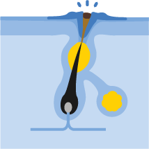 Abnorme proliferazione e differenziazione delle cellule dell’epidermide (i cheratinociti) localizzate a livello del follicolo pilifero.
